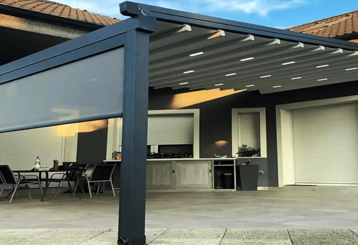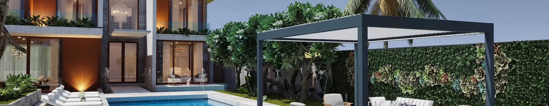 Structures aluminium, toiles techniques anti-UV, options motorisées et pilotables à distance.